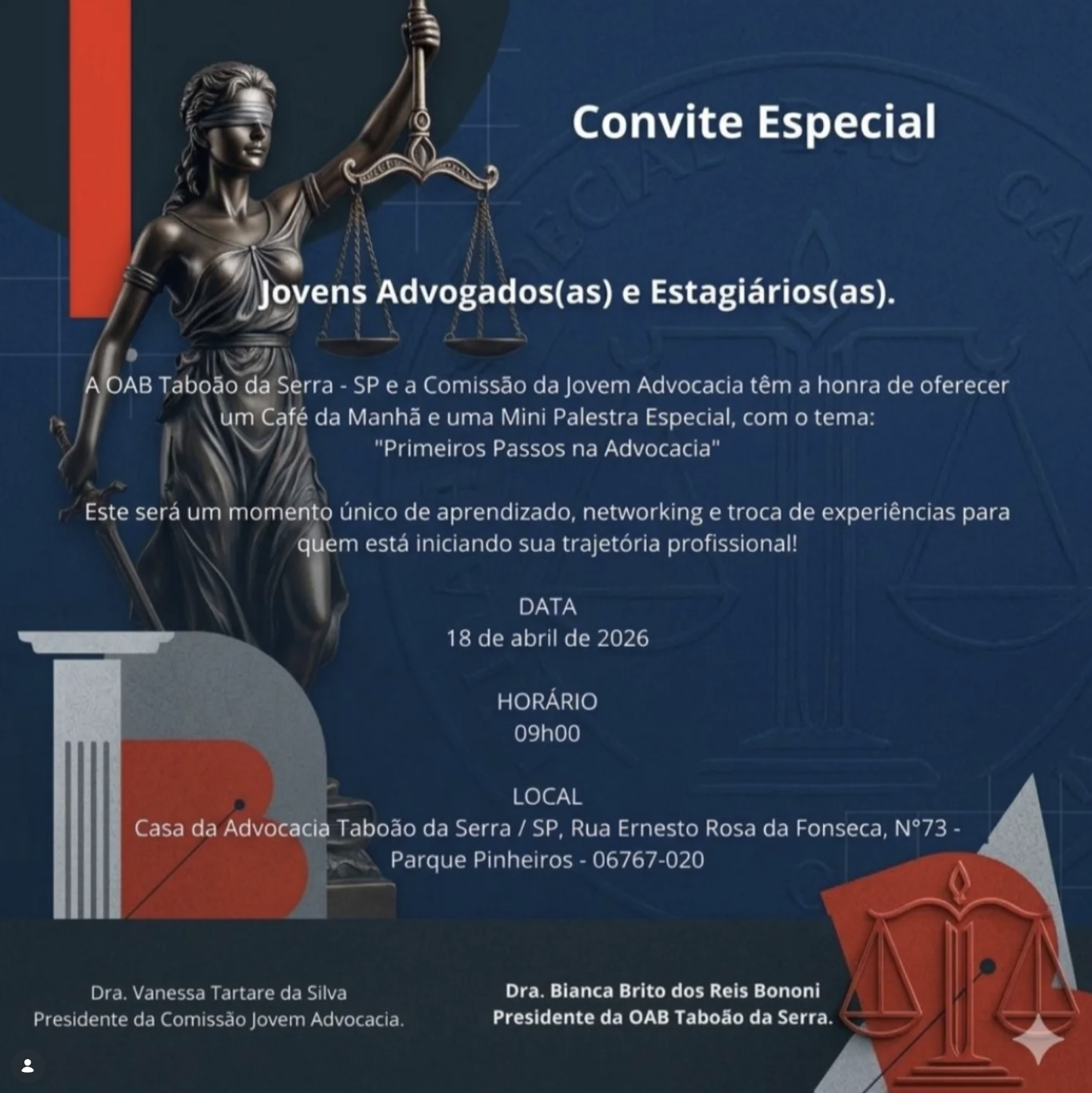 Estagiários, jovens advogados(as) e toda a advocacia estão convidados para esse momento especial de integração e troca de experiências.